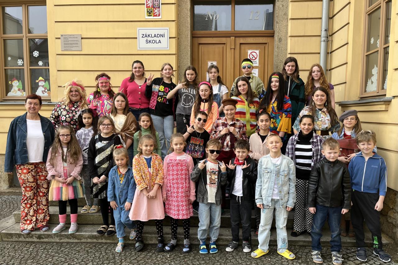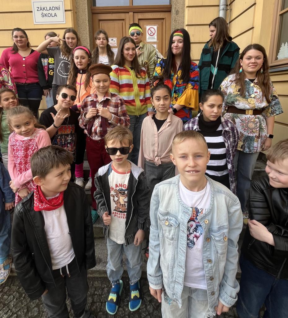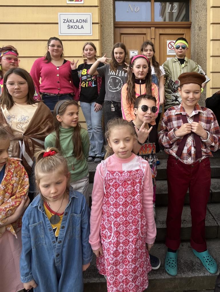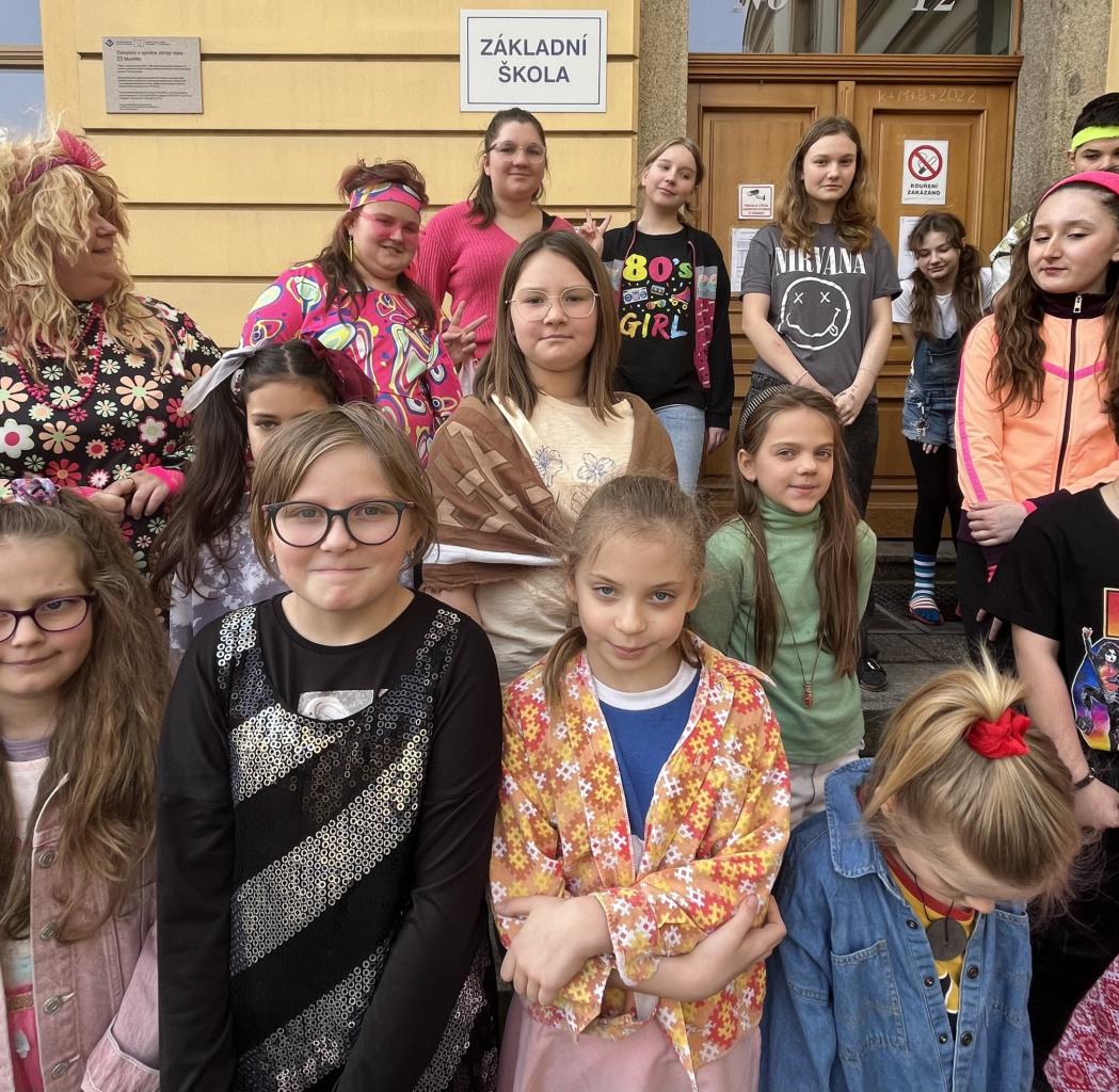 Žákovská rada předložila návrh uspořádat na škole tzv. "retro den". Podívejte se, jak jsme přišli oblečení...